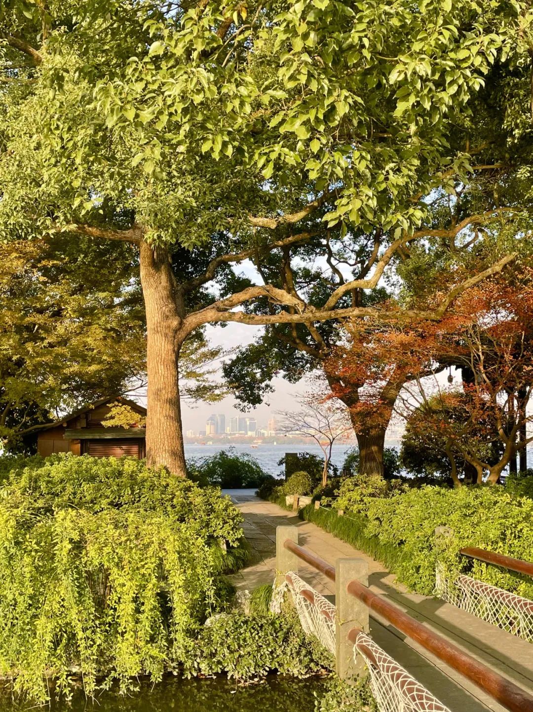 生活在城市之中,抬头望去,即是被各种建筑切割的天空。在“钢铁森林”待久了,已经快忘了天空是什么颜色,风是从什么地方吹来的。这张图拍摄于杭州西湖中央的三潭印月,从此视角望去,我仿佛走出城市的藩篱,用脚丈量着这岛上的每一寸土地,感受着翠绿松软的小草和泥土下迸发的生命力。