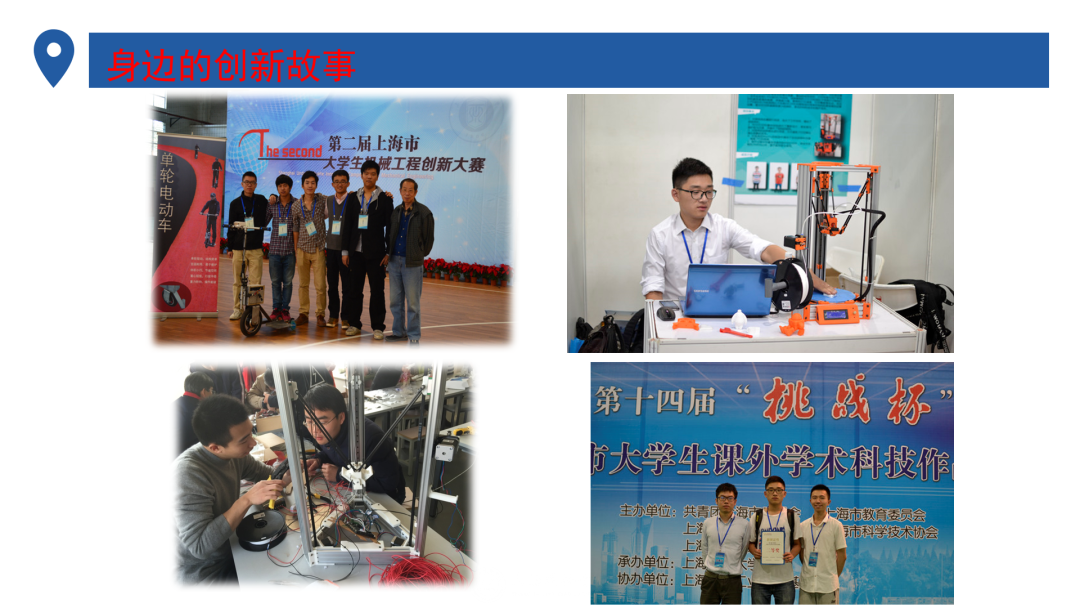 机电学院学生最常参与的有两类竞赛,第一类是专业性学科竞赛,注重基本知识应用能力;第二类竞赛是综合型的创新创业大赛,其特点是对于社会问题的全方位、多层次的解决能力,强调对社会问题的发现能力以及对知识的应用,可以联合全校的资源进行团队合作,而机电学院在这一方面具有极强的优势。同时学校也可以为“爱折腾的梦想家”们提供专业指导老师,免费使用的“车库”,实验室的各种仪器设备,丰富的竞赛平台以及社会资源的支持。通过参与科创竞赛未来你将拥有敢闯的素质、会创的本领、家国的情怀。