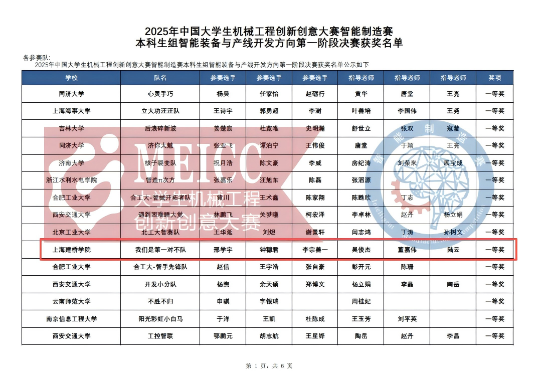 8月18日上午,2025中国大学生机械工程创新创意大赛智能制造赛第一阶段全国总决赛闭幕式在上海建桥学院落下帷幕。此次大赛中,上海建桥学院机电学院表现卓越,其派出的一支参赛队伍成功斩获全国一等奖,充分展现了学院在智能制造领域的深厚教学实力与学生们的创新实践能力。