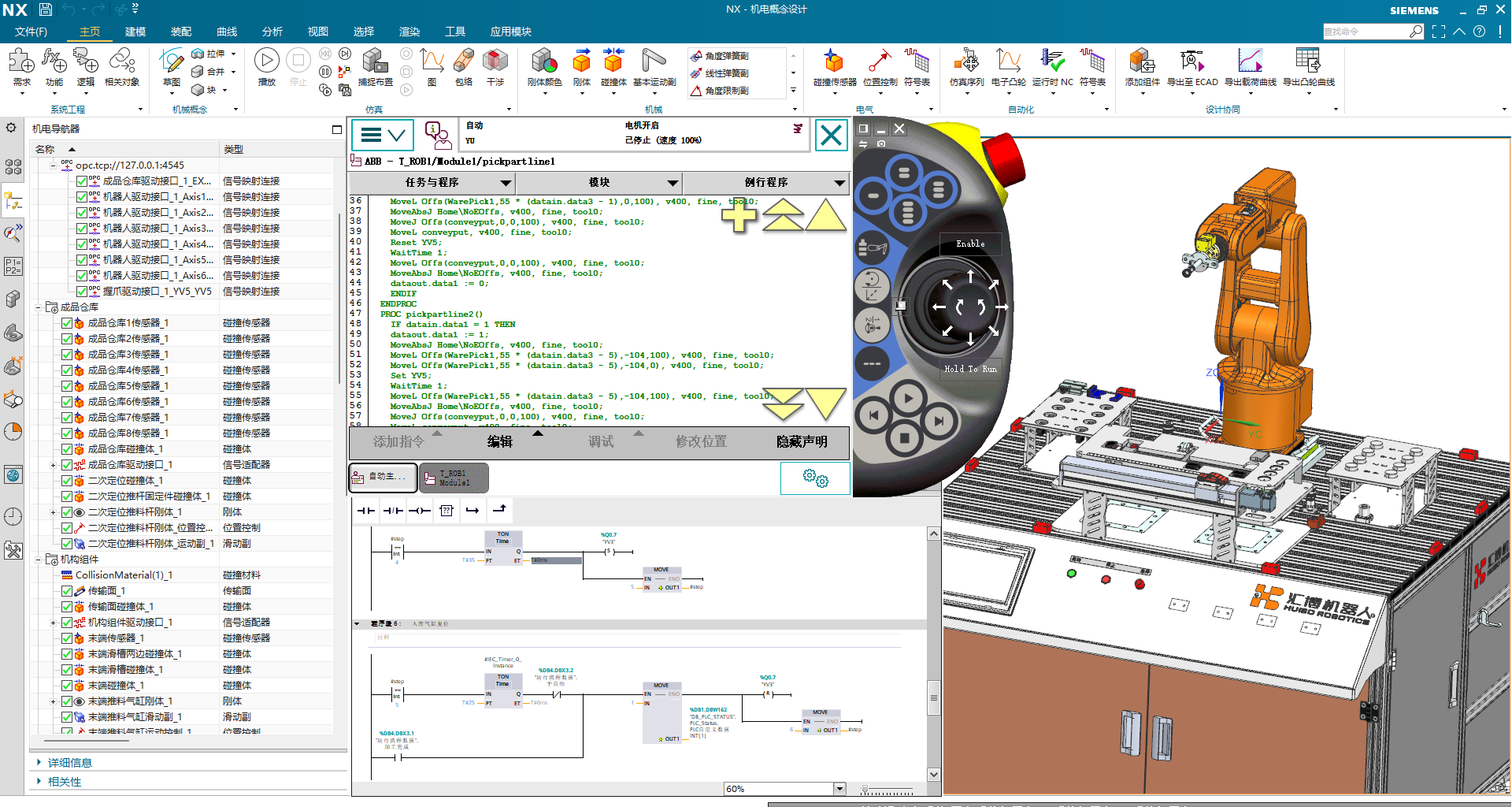 在竞赛过程中,团队基于NX MCD完成产线设备的虚拟仿真建模,利用RobotStudio进行机器人离线编程与轨迹规划,并通过博途(TIA Portal)实现PLC控制系统开发,最终依托数据通讯软件实现NX、RobotStudio和博途三大平台的无缝集成与实时数据交互,成功构建了高效、稳定、可视化的虚实联动智能制造系统。这一综合性的技术实践,全面检验并展示了我院智能制造工程专业在数字孪生应用技术方面的系统集成与创新应用能力。