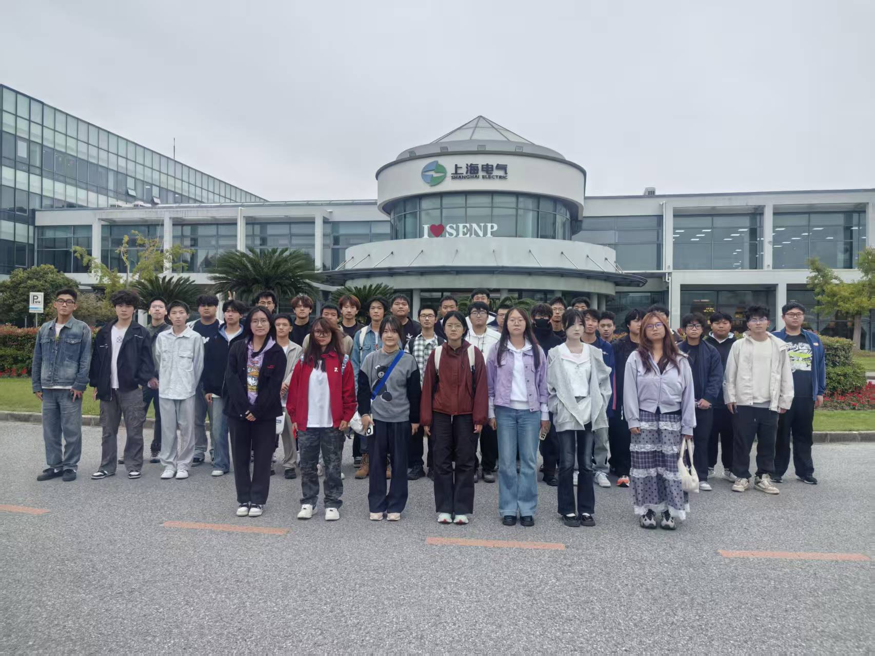 随后,师生一行前往物流码头,实地观摩上海电气在风电、清洁能源等领域的先进装备。整齐排列的海上风电设备与现代化的码头作业场景,让同学们直观感受到“大国重器”背后的科技力量与制造实力。
