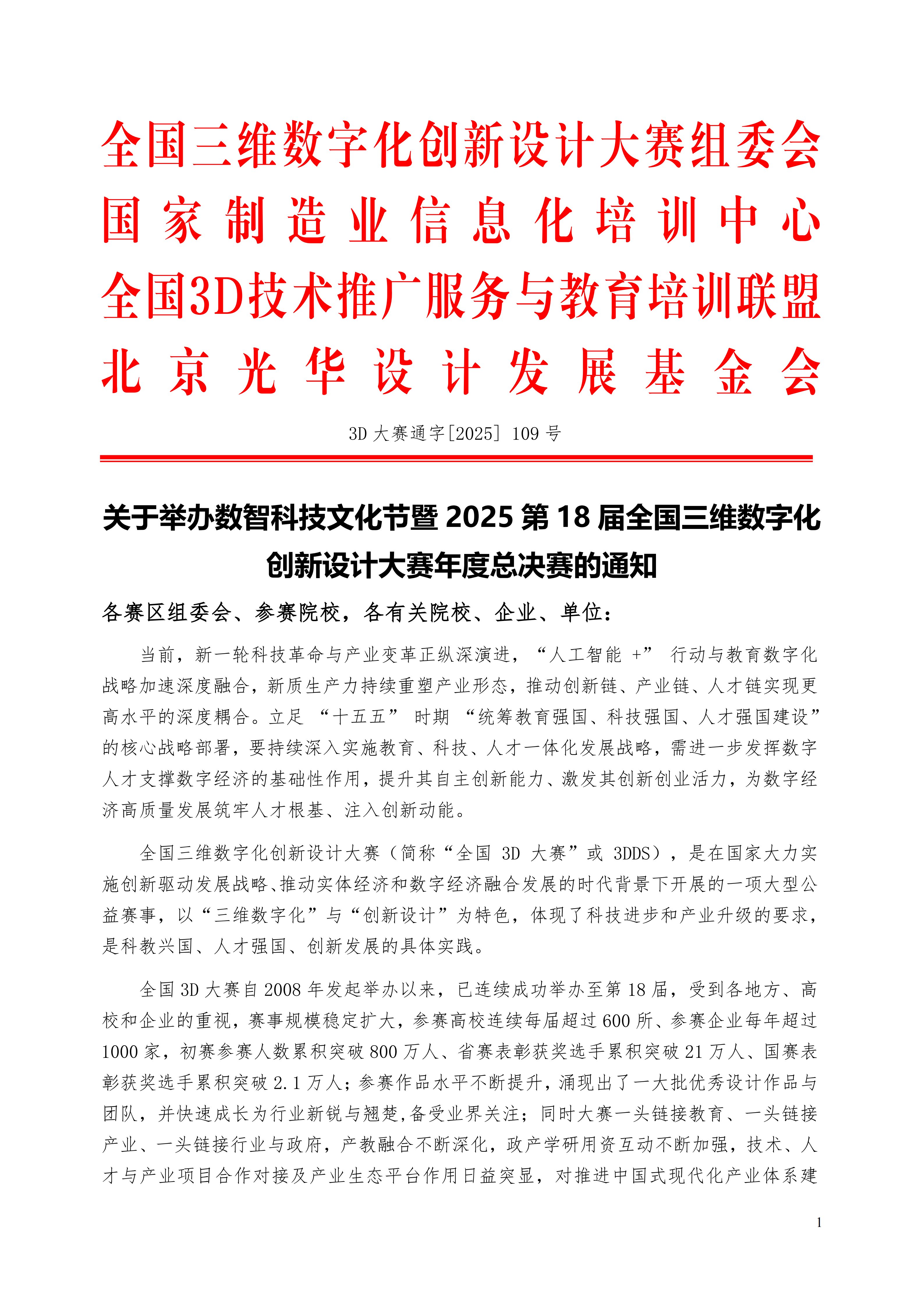关于举办2025第18届全国三维数字化创新设计大赛年度总决赛通知.pdf