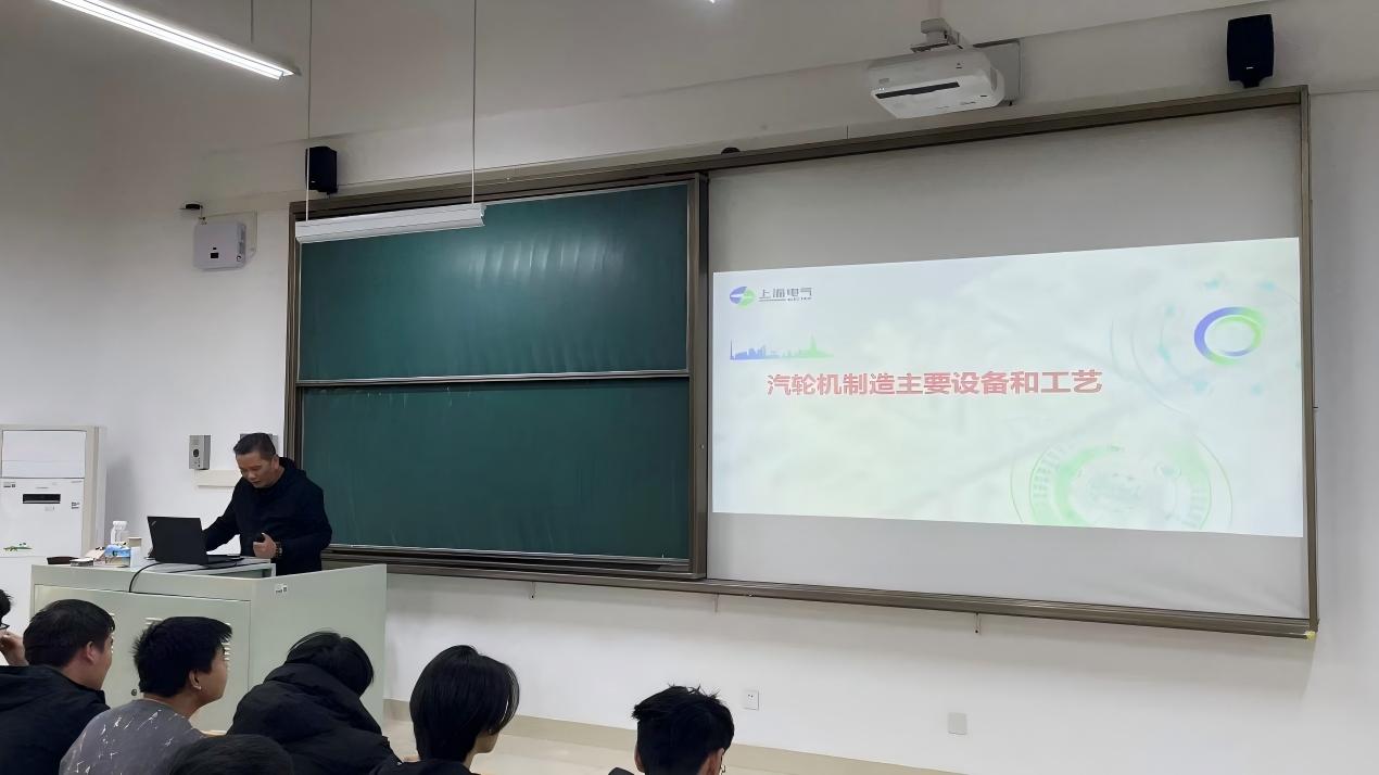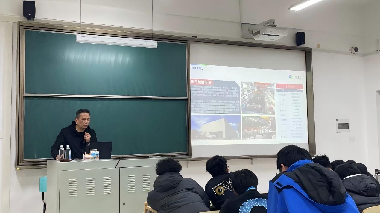 沈总工以《汽轮机制造主要设备和工艺》为题,围绕我国大型汽轮机的发展脉络、汽轮机关键部件的加工特点、核心制造装备的技术能力以及现代工艺流程等内容进行了系统讲解。他从实际项目经验出发,重点介绍了转子加工设备、动静叶片制造工艺、重型立车与多轴联动加工中心的应用场景、在线检测技术与质量控制体系等关键技术点,使师生充分了解汽轮机制造对精密加工、材料性能、装配工艺以及工匠技能的高度要求。